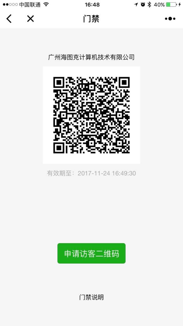與此同時,擁有門禁“鑰匙”者,也可通過微信小程序直接授權生成訪客二維碼或者通過短信發送二維碼授權給訪客,訪客打開網頁接收門禁二維碼,即可在旗魚門禁掃描窗口上快速掃描開門。