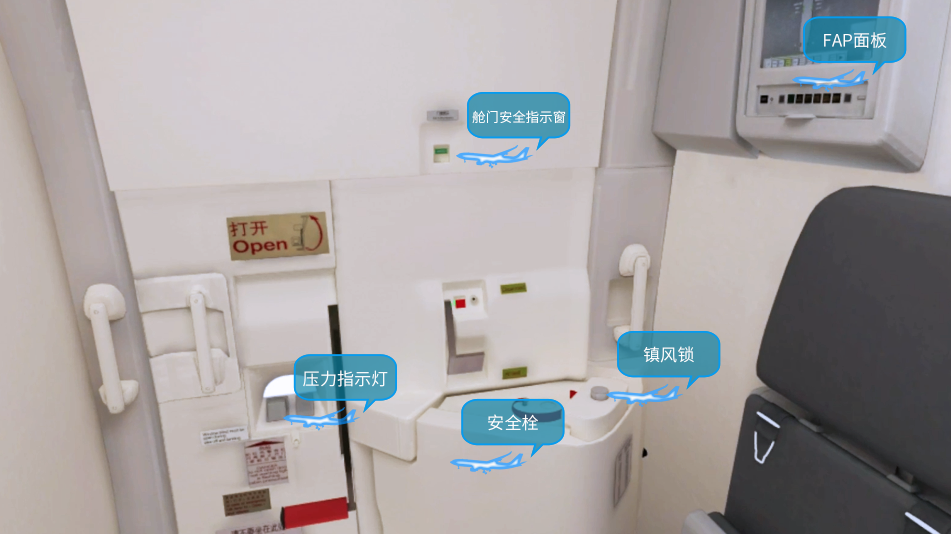VR航空是我司重點開發的VR應用項目,其是通過創建機外及艙內場景模型,向空乘人員和機務人員提供虛擬現實VR實訓場景,以及針對航空發動機等實訓內容進行建模和多角色交互,并在行業中首次開發了模擬機艙協同滅火等應用場景。