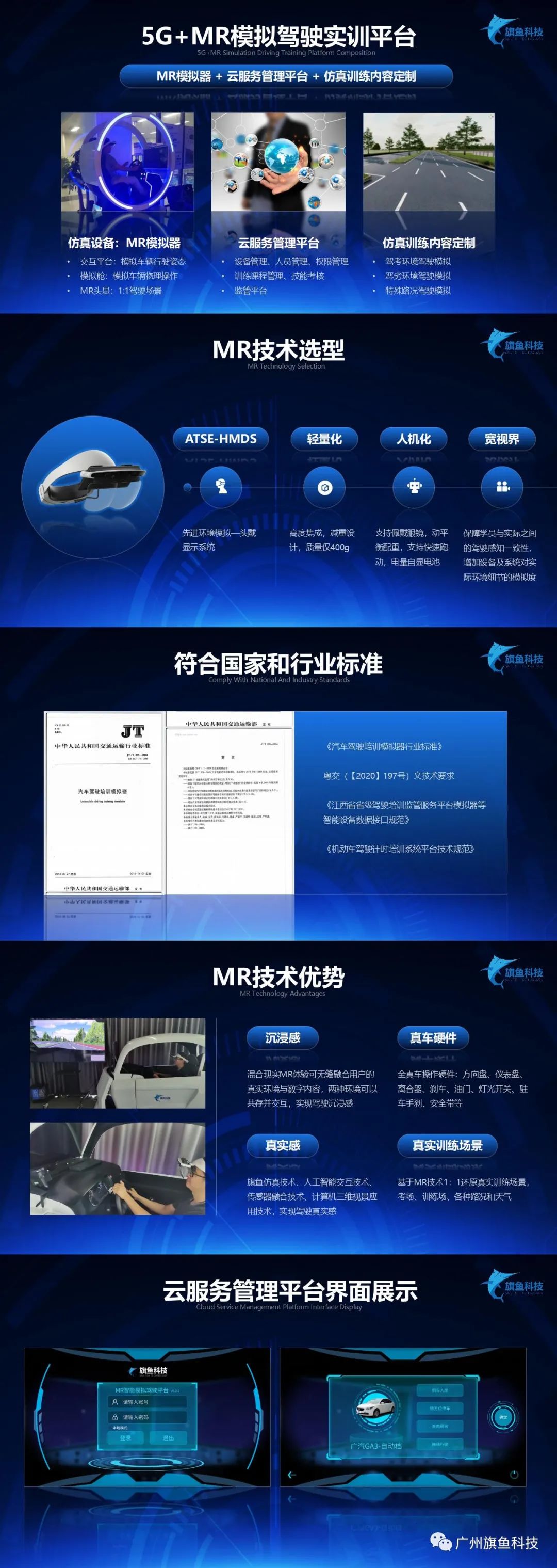 旗魚MR駕駛培訓是5G+MR模擬駕駛實訓平臺。針對駕校目前面臨的訓練場租金成本重、培訓成本高卻效率低、教學任務重、價格戰激烈等痛點進行研發。